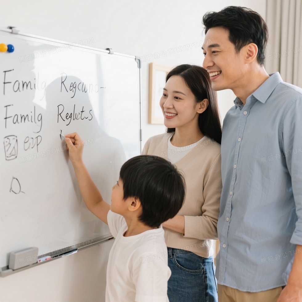 本作品内容为父母和孩子一起在白板上写下家庭规则, 格式为 jpg, 大小1 MB, 图片尺寸为1328 x 1328, 源文件无水印, 欢迎使用熊猫办公。 如认为平台内容涉嫌侵权,可通过邮件:tousu@tukuppt.com提出书面通知,我们将及时处理。