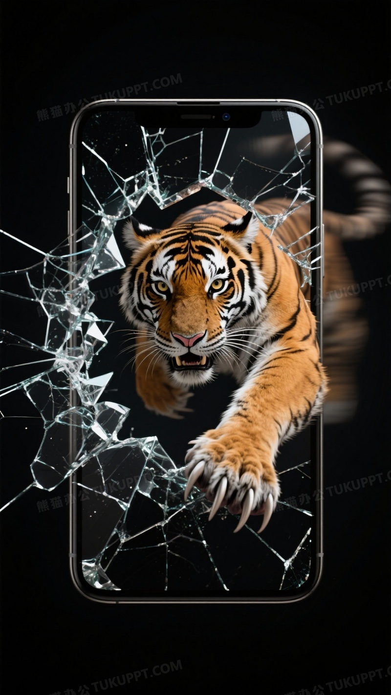 本作品内容为一只孟加拉虎从碎裂的手机屏幕中跃出, 格式为 jpg, 大小1 MB, 图片尺寸为936 x 1664, 源文件无水印, 欢迎使用熊猫办公。 如认为平台内容涉嫌侵权,可通过邮件:tousu@tukuppt.com提出书面通知,我们将及时处理。