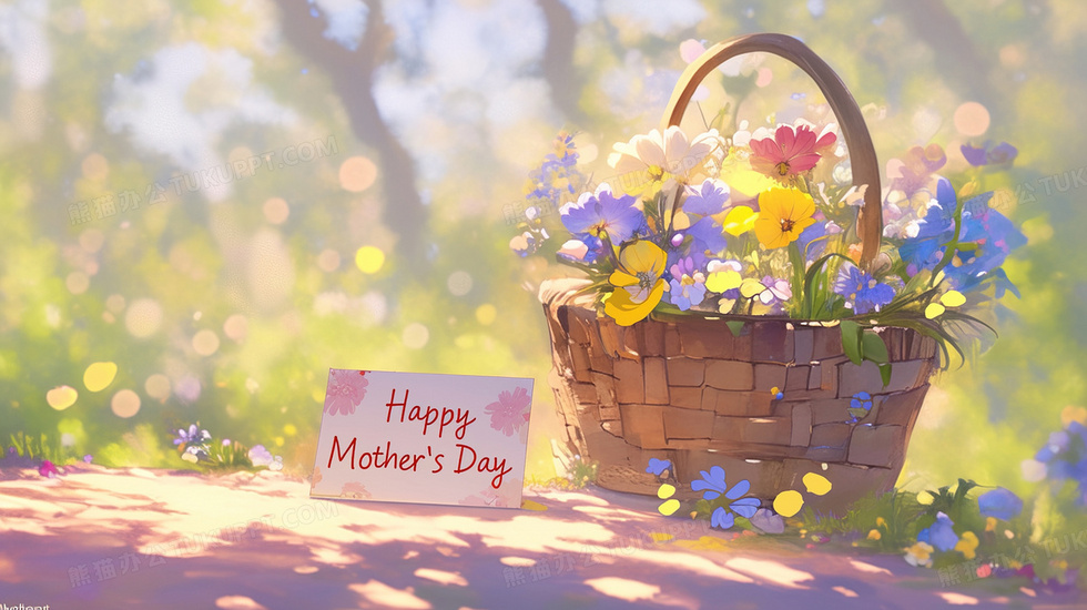 本作品内容为母亲节放在地上的鲜花花篮卡通插画, 格式为 jpg, 大小3 MB, 图片尺寸为2912 x 1632, 源文件无水印, 欢迎使用熊猫办公。 如认为平台内容涉嫌侵权,可通过邮件:tousu@tukuppt.com提出书面通知,我们将及时处理。