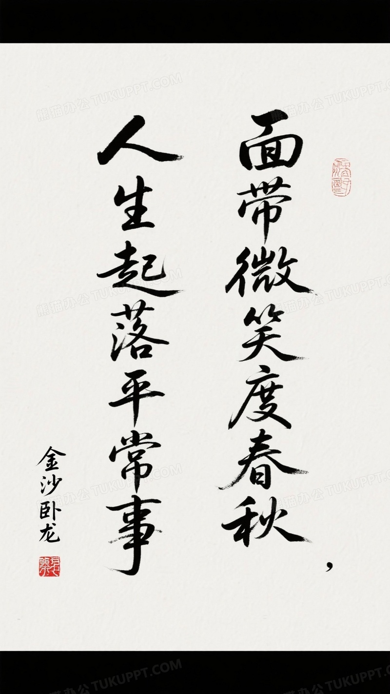 本作品内容为这幅书法作品以流畅的草书书写于素净的纸张之上, 格式为 jpg, 大小1 MB, 图片尺寸为936 x 1664, 源文件无水印, 欢迎使用熊猫办公。 如认为平台内容涉嫌侵权,可通过邮件:tousu@tukuppt.com提出书面通知,我们将及时处理。