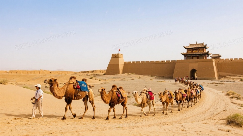 本作品内容为骆驼商队与古城丝绸之路路线, 格式为 jpg, 大小1 MB, 图片尺寸为1664 x 936, 源文件无水印, 欢迎使用熊猫办公。 如认为平台内容涉嫌侵权,可通过邮件:tousu@tukuppt.com提出书面通知,我们将及时处理。