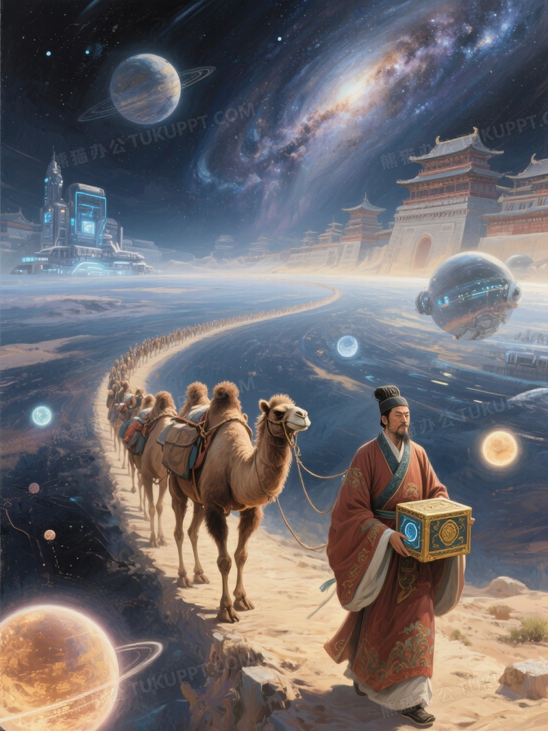 本作品内容为[星際絲綢之路]充滿復古未來風格的油畫, 格式为 jpg, 大小1 MB, 图片尺寸为1104 x 1472, 源文件无水印, 欢迎使用熊猫办公。 如认为平台内容涉嫌侵权,可通过邮件:tousu@tukuppt.com提出书面通知,我们将及时处理。