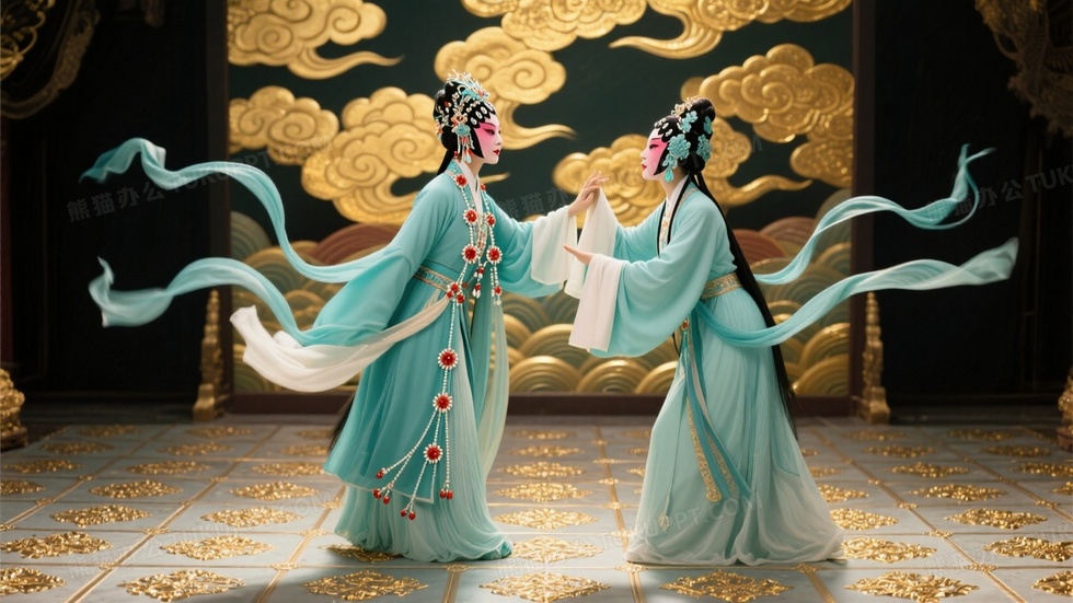 本作品内容为双人青衣对戏场景正侧面展现身段线条, 格式为 jpg, 大小1 MB, 图片尺寸为1664 x 936, 源文件无水印, 欢迎使用熊猫办公。 如认为平台内容涉嫌侵权,可通过邮件:tousu@tukuppt.com提出书面通知,我们将及时处理。