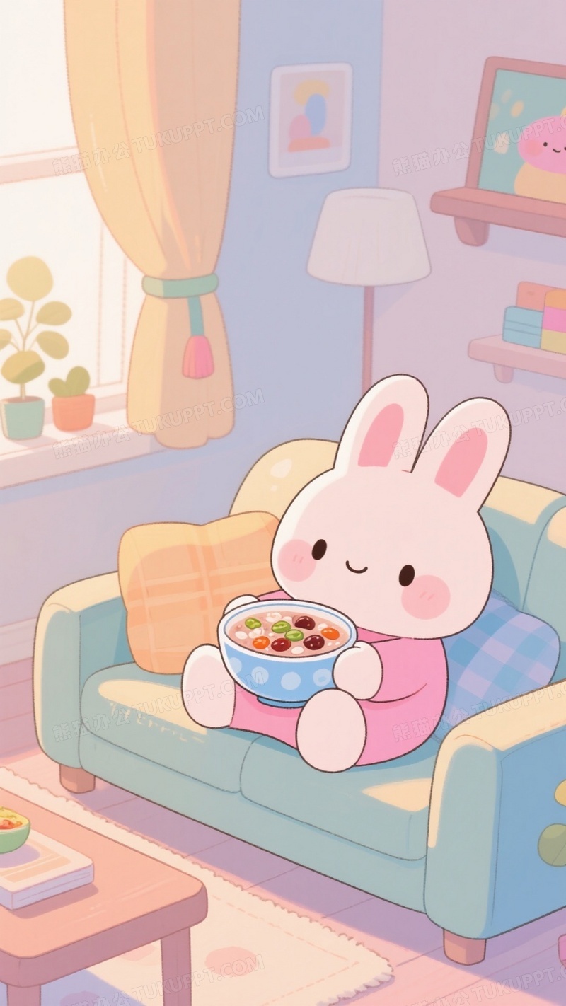 本作品内容为小兔子窝在沙发上手里捧着一碗八宝粥, 格式为 jpg, 大小1 MB, 图片尺寸为936 x 1664, 源文件无水印, 欢迎使用熊猫办公。 如认为平台内容涉嫌侵权,可通过邮件:tousu@tukuppt.com提出书面通知,我们将及时处理。