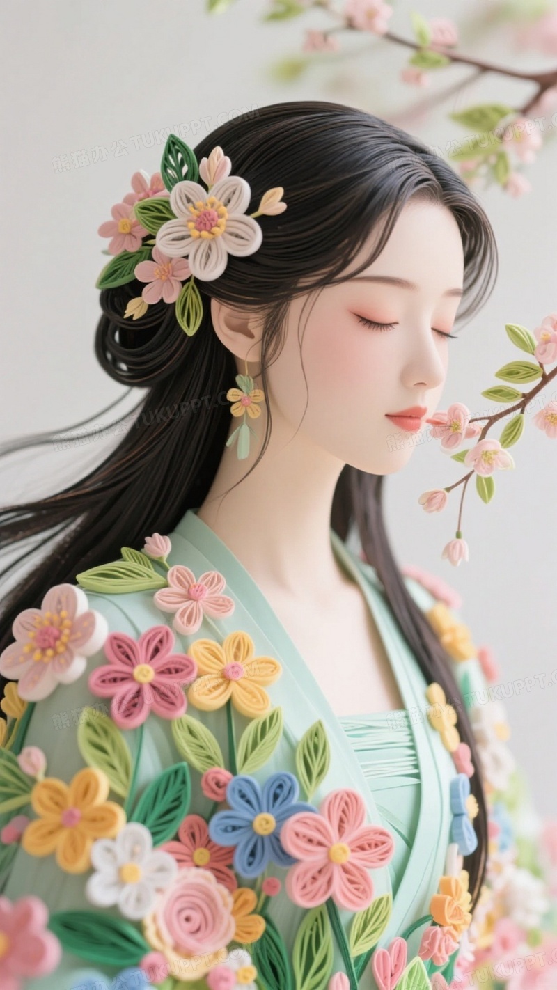 本作品内容为衍纸艺术春风吻过眉梢, 格式为 jpg, 大小1 MB, 图片尺寸为936 x 1664, 源文件无水印, 欢迎使用熊猫办公。 如认为平台内容涉嫌侵权,可通过邮件:tousu@tukuppt.com提出书面通知,我们将及时处理。