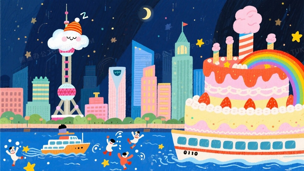 本作品内容为儿童绘本卡通江景东方明珠戴着云朵睡帽, 格式为 jpg, 大小1 MB, 图片尺寸为1664 x 936, 源文件无水印, 欢迎使用熊猫办公。 如认为平台内容涉嫌侵权,可通过邮件:tousu@tukuppt.com提出书面通知,我们将及时处理。