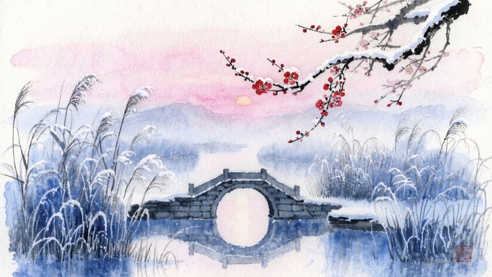 本作品内容为水彩湿画法江南冬晓群青混色描绘霜冻芦苇荡, 格式为 jpg, 大小1 MB, 图片尺寸为1664 x 936, 源文件无水印, 欢迎使用熊猫办公。 如认为平台内容涉嫌侵权,可通过邮件:tousu@tukuppt.com提出书面通知,我们将及时处理。