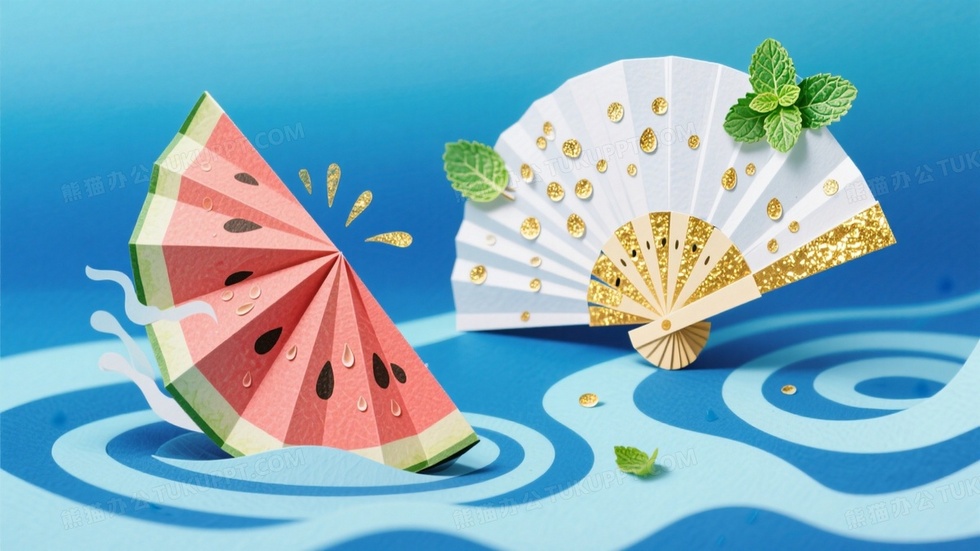 本作品内容为折纸艺术节气插画立体西瓜风扇转动出涟漪, 格式为 jpg, 大小1 MB, 图片尺寸为1664 x 936, 源文件无水印, 欢迎使用熊猫办公。 如认为平台内容涉嫌侵权,可通过邮件:tousu@tukuppt.com提出书面通知,我们将及时处理。
