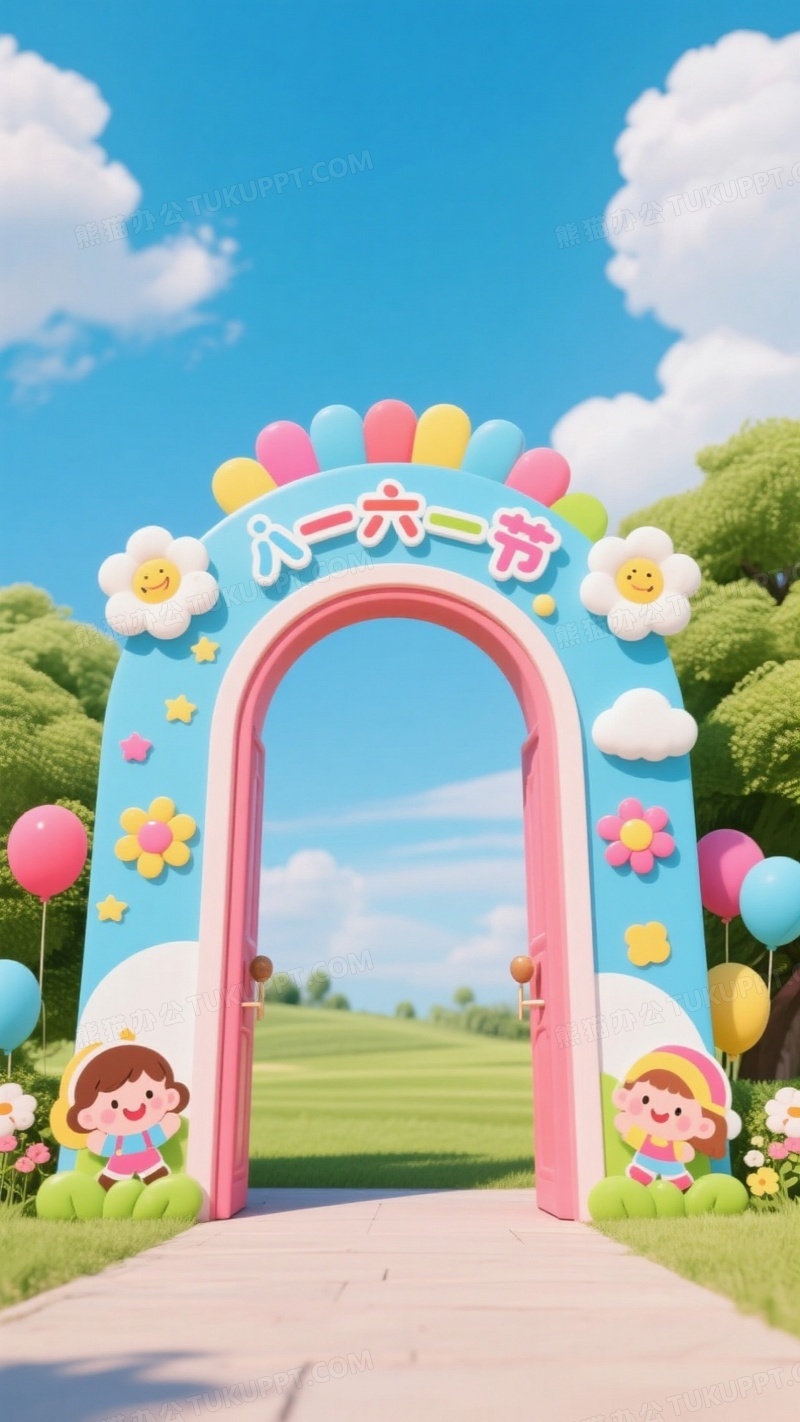 本作品内容为六一儿童节的门型拱门加背景板, 格式为 jpg, 大小1 MB, 图片尺寸为936 x 1664, 源文件无水印, 欢迎使用熊猫办公。 如认为平台内容涉嫌侵权,可通过邮件:tousu@tukuppt.com提出书面通知,我们将及时处理。