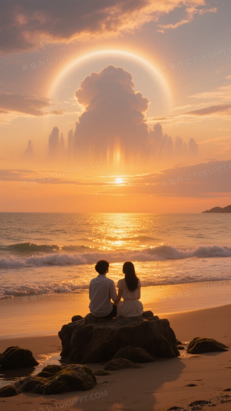 本作品内容为海滩上霞光漫天一对恋人坐在礁石上, 格式为 jpg, 大小1 MB, 图片尺寸为936 x 1664, 源文件无水印, 欢迎使用熊猫办公。 如认为平台内容涉嫌侵权,可通过邮件:tousu@tukuppt.com提出书面通知,我们将及时处理。