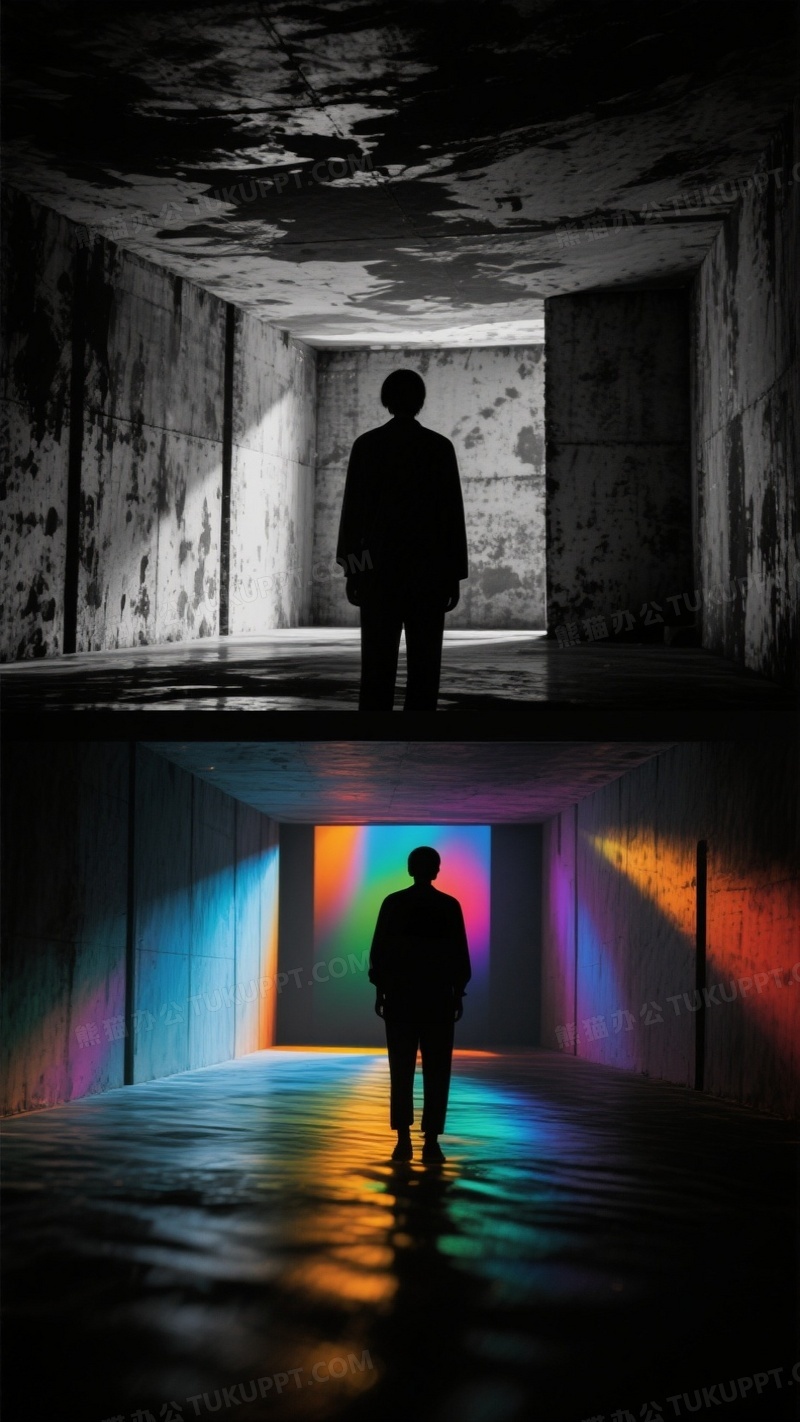 本作品内容为暗黑系斑驳的黑白光影和彩色的光影交织, 格式为 jpg, 大小1 MB, 图片尺寸为936 x 1664, 源文件无水印, 欢迎使用熊猫办公。 如认为平台内容涉嫌侵权,可通过邮件:tousu@tukuppt.com提出书面通知,我们将及时处理。