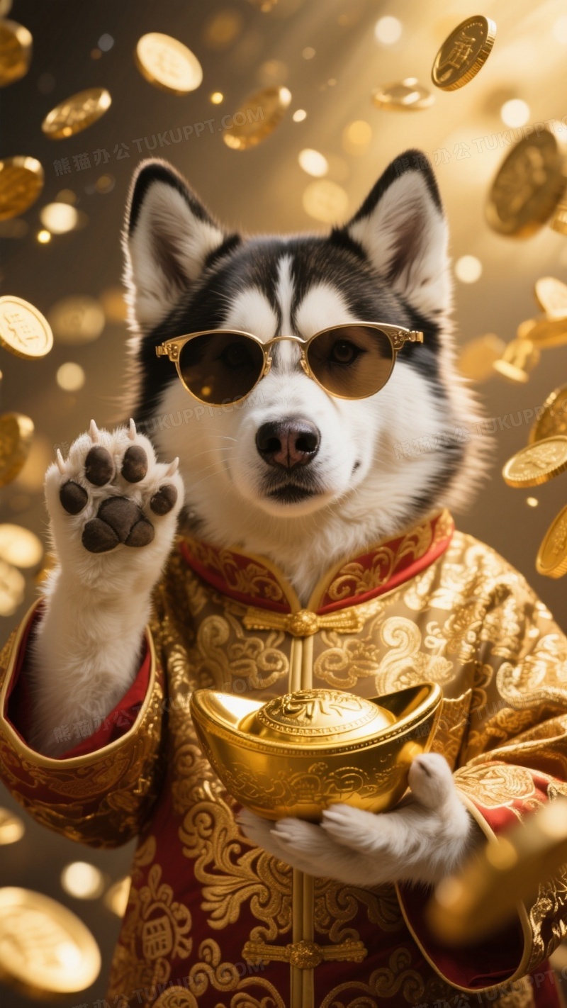 本作品内容为一只哈士奇身着财神服饰, 格式为 jpg, 大小1 MB, 图片尺寸为936 x 1664, 源文件无水印, 欢迎使用熊猫办公。 如认为平台内容涉嫌侵权,可通过邮件:tousu@tukuppt.com提出书面通知,我们将及时处理。