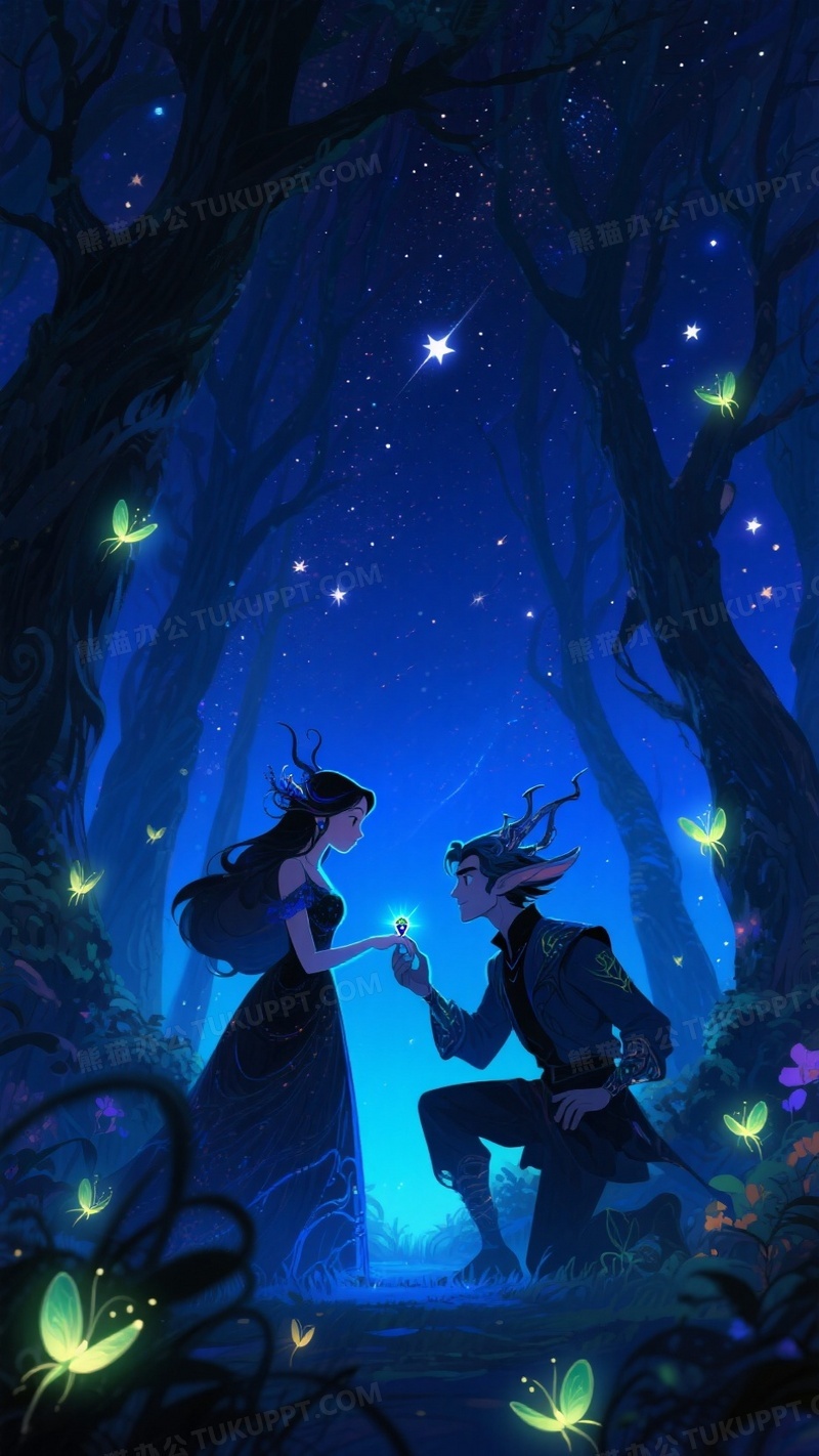 本作品内容为奇幻求婚插画情侣身处星空下的魔法森林, 格式为 jpg, 大小1 MB, 图片尺寸为936 x 1664, 源文件无水印, 欢迎使用熊猫办公。 如认为平台内容涉嫌侵权,可通过邮件:tousu@tukuppt.com提出书面通知,我们将及时处理。