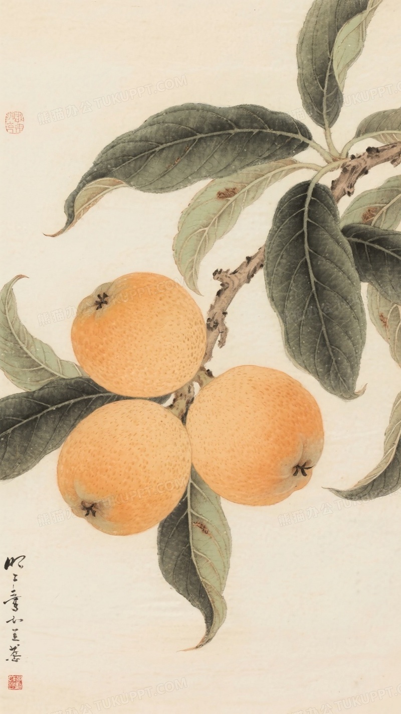 本作品内容为工笔画枇杷画面明艳垂涎欲滴, 格式为 jpg, 大小1 MB, 图片尺寸为936 x 1664, 源文件无水印, 欢迎使用熊猫办公。 如认为平台内容涉嫌侵权,可通过邮件:tousu@tukuppt.com提出书面通知,我们将及时处理。
