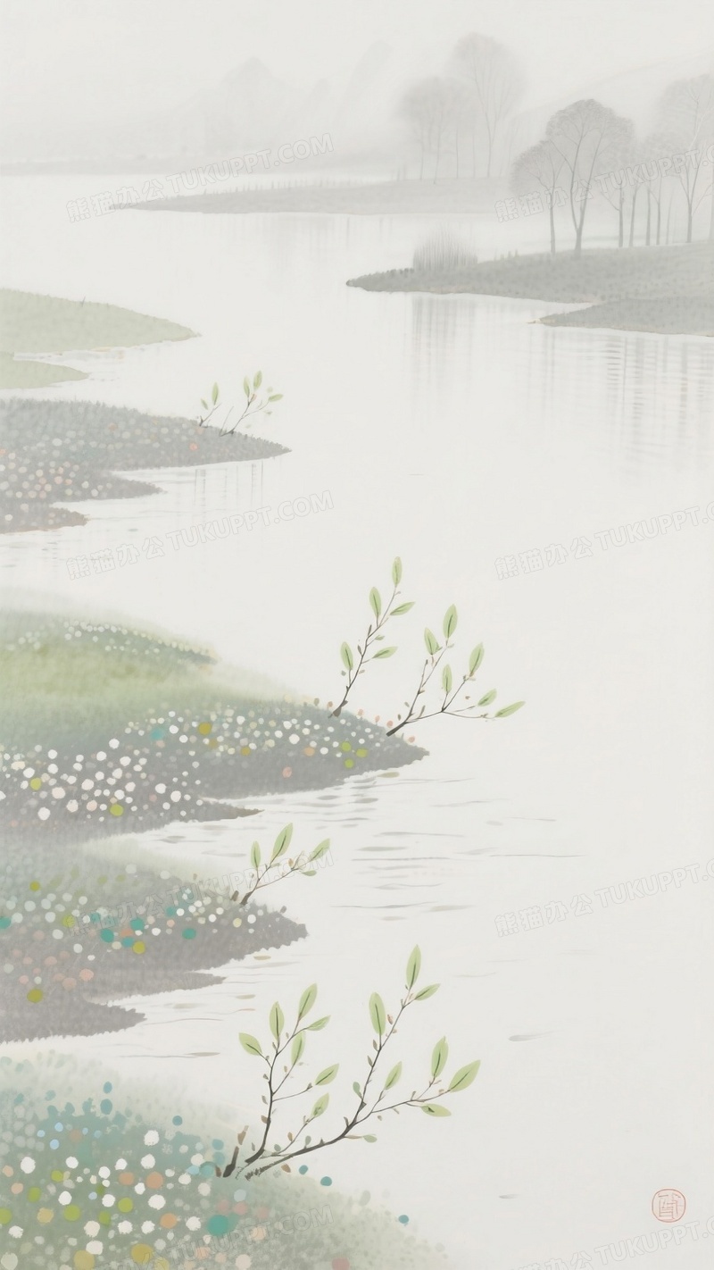 本作品内容为点彩水墨画江边春色嫩芽, 格式为 jpg, 大小1 MB, 图片尺寸为936 x 1664, 源文件无水印, 欢迎使用熊猫办公。 如认为平台内容涉嫌侵权,可通过邮件:tousu@tukuppt.com提出书面通知,我们将及时处理。