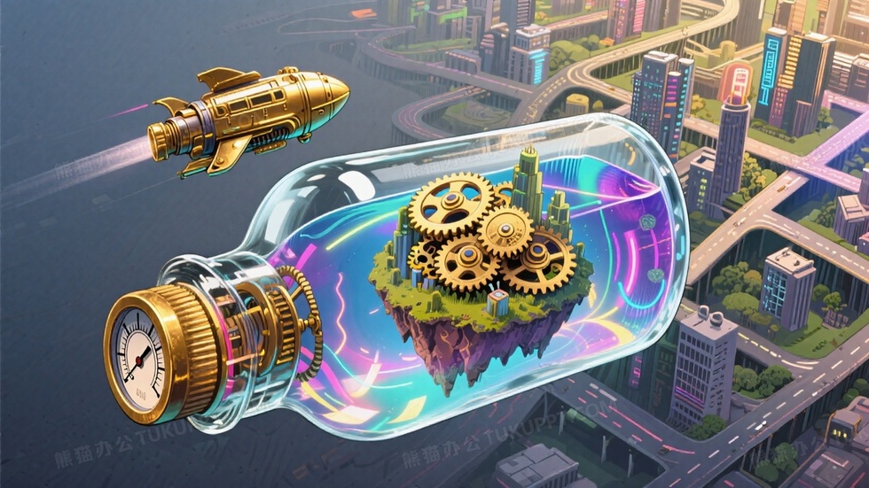 本作品内容为蒸汽朋克瓶中城市插画, 格式为 jpg, 大小1 MB, 图片尺寸为1664 x 936, 源文件无水印, 欢迎使用熊猫办公。 如认为平台内容涉嫌侵权,可通过邮件:tousu@tukuppt.com提出书面通知,我们将及时处理。