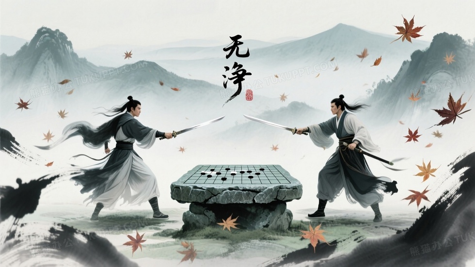 本作品内容为禅意武侠对战场景两名侠士在青石棋盘旁持剑对峙, 格式为 jpg, 大小1 MB, 图片尺寸为1664 x 936, 源文件无水印, 欢迎使用熊猫办公。 如认为平台内容涉嫌侵权,可通过邮件:tousu@tukuppt.com提出书面通知,我们将及时处理。