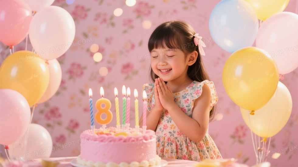 本作品内容为小女孩庆祝8岁生日主题摄影图, 格式为 jpg, 大小1 MB, 图片尺寸为1664 x 936, 源文件无水印, 欢迎使用熊猫办公。 如认为平台内容涉嫌侵权,可通过邮件:tousu@tukuppt.com提出书面通知,我们将及时处理。