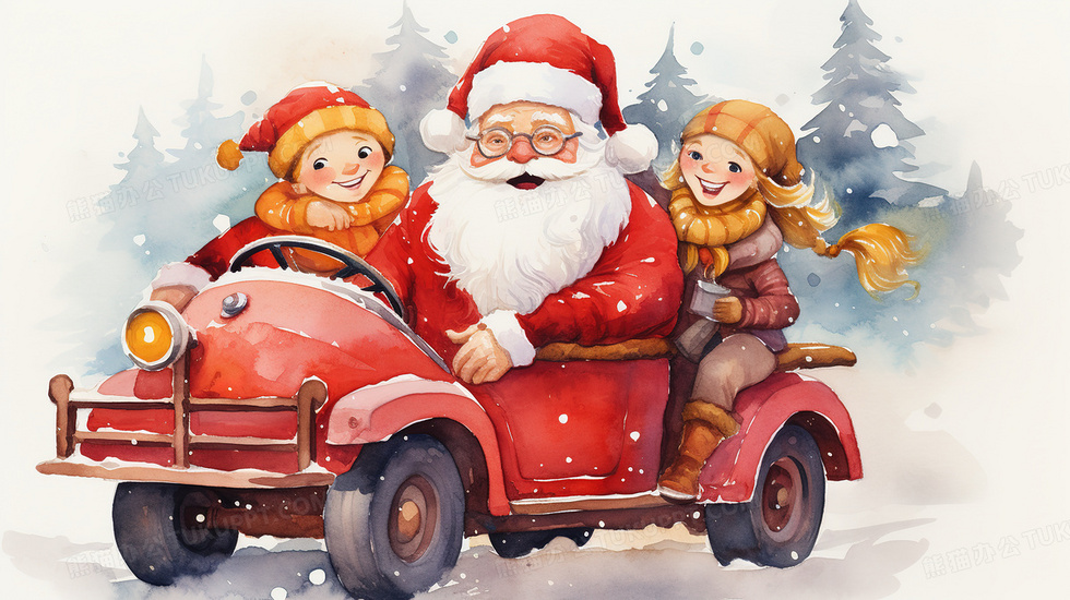 本作品内容为圣诞节圣诞老人开车送礼物插画, 格式为 jpg, 大小7 MB, 图片尺寸为2912 x 1632, 源文件无水印, 欢迎使用熊猫办公。 如认为平台内容涉嫌侵权,可通过邮件:tousu@tukuppt.com提出书面通知,我们将及时处理。