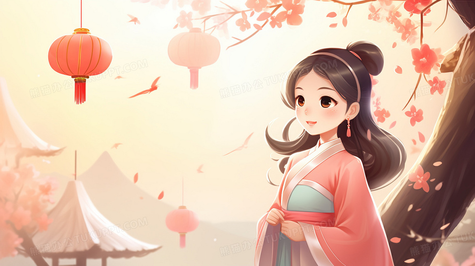 本作品内容为中国春节赏花灯的女孩插画, 格式为 jpg, 大小4 MB, 图片尺寸为2912 x 1632, 源文件无水印, 欢迎使用熊猫办公。 如认为平台内容涉嫌侵权,可通过邮件:tousu@tukuppt.com提出书面通知,我们将及时处理。