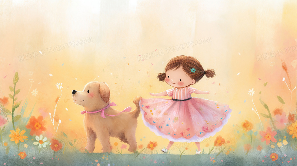 本作品内容为鲜花丛中的女孩和小狗插画, 格式为 jpg, 大小3 MB, 图片尺寸为2912 x 1632, 源文件无水印, 欢迎使用熊猫办公。 如认为平台内容涉嫌侵权,可通过邮件:tousu@tukuppt.com提出书面通知,我们将及时处理。