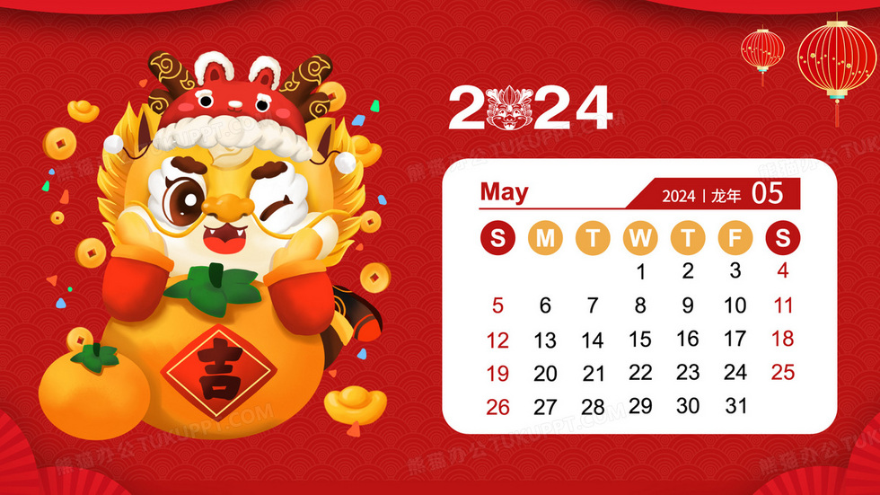 本作品内容为2024龙年大吉日历五月插画, 格式为 ai, 大小21 MB, 请使用软件Illustrator(CS6)打开, 源文件无水印, 欢迎使用熊猫办公。 如认为平台内容涉嫌侵权,可通过邮件:tousu@tukuppt.com提出书面通知,我们将及时处理。