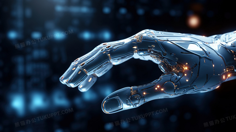 本作品内容为蓝色商务科技风格虚拟机械手臂科幻插画, 格式为 jpg, 大小2 MB, 图片尺寸为2912 x 1632, 源文件无水印, 欢迎使用熊猫办公。 如认为平台内容涉嫌侵权,可通过邮件:tousu@tukuppt.com提出书面通知,我们将及时处理。
