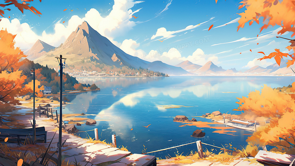 本作品内容为蓝天白云秋天落叶唯美风景插画, 格式为 jpg, 大小7 MB, 图片尺寸为2912 x 1632, 源文件无水印, 欢迎使用熊猫办公。 如认为平台内容涉嫌侵权,可通过邮件:tousu@tukuppt.com提出书面通知,我们将及时处理。