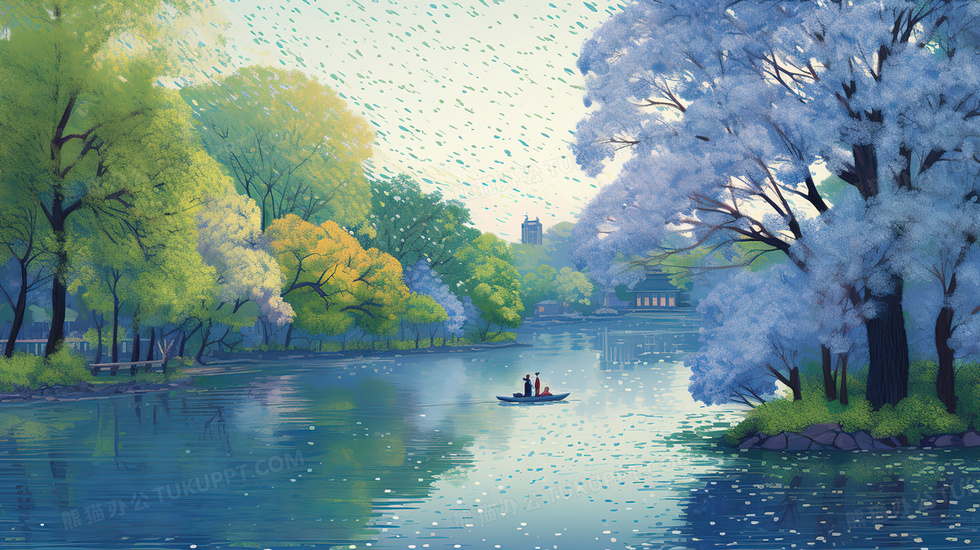 本作品内容为河边两边开满花的大树美景插画, 格式为 jpg, 大小8 MB, 图片尺寸为2912 x 1632, 源文件无水印, 欢迎使用熊猫办公。 如认为平台内容涉嫌侵权,可通过邮件:tousu@tukuppt.com提出书面通知,我们将及时处理。