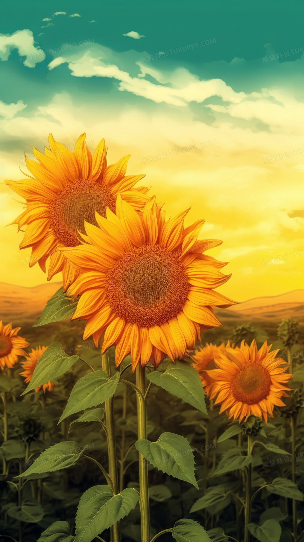 本作品内容为绚丽的向日葵插画图片, 格式为 jpg, 大小3 MB, 图片尺寸为1632 x 2912, 源文件无水印, 欢迎使用熊猫办公。 如认为平台内容涉嫌侵权,可通过邮件:tousu@tukuppt.com提出书面通知,我们将及时处理。