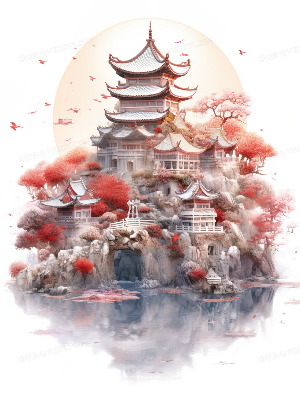 本作品内容为彩色中国风古典建筑插画, 格式为 jpg, 大小6 MB, 图片尺寸为1856 x 2464, 源文件无水印, 欢迎使用熊猫办公。 如认为平台内容涉嫌侵权,可通过邮件:tousu@tukuppt.com提出书面通知,我们将及时处理。