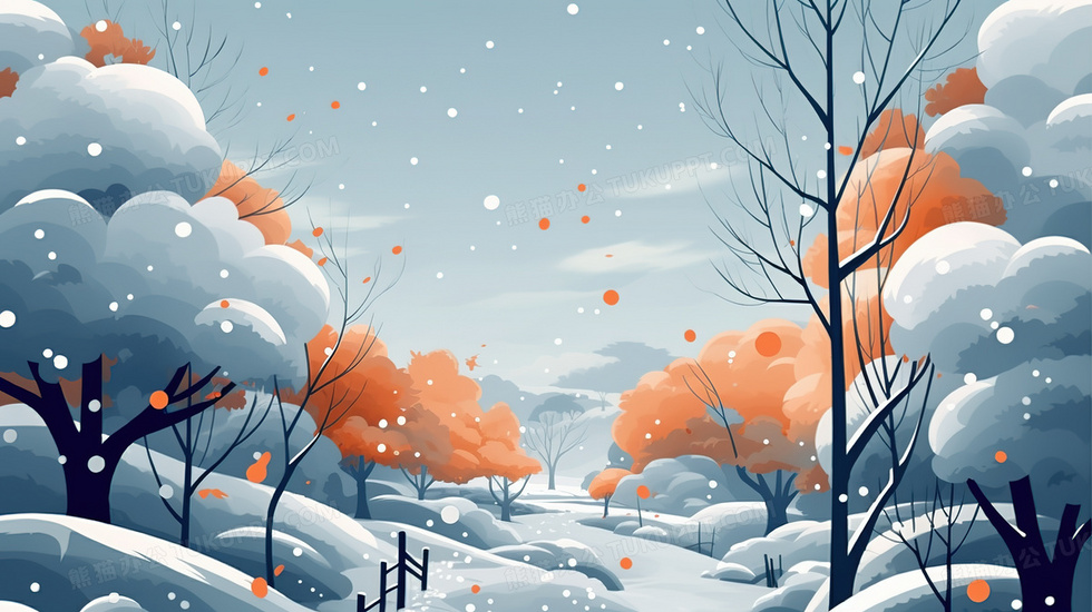 本作品内容为冬季飘雪中红叶山林插画, 格式为 jpg, 大小5 MB, 图片尺寸为2912 x 1632, 源文件无水印, 欢迎使用熊猫办公。 如认为平台内容涉嫌侵权,可通过邮件:tousu@tukuppt.com提出书面通知,我们将及时处理。
