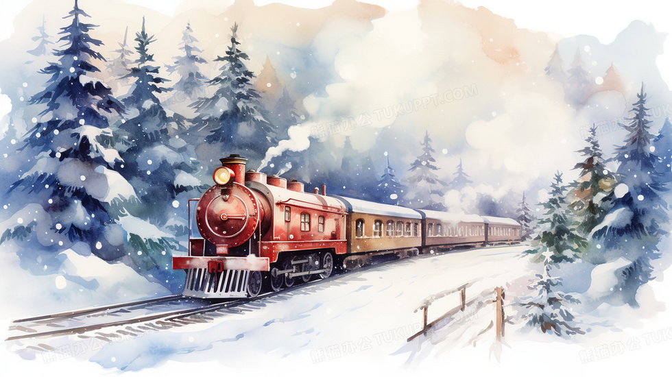本作品内容为大雪天树林雪地铁道上行驶的火车插画, 格式为 jpg, 大小6 MB, 图片尺寸为2912 x 1632, 源文件无水印, 欢迎使用熊猫办公。 如认为平台内容涉嫌侵权,可通过邮件:tousu@tukuppt.com提出书面通知,我们将及时处理。