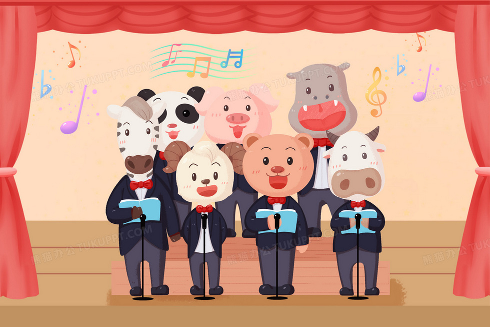 本作品内容为小动物合唱团舞台上唱歌表演插画, 格式为 psd, 大小13 MB, 请使用软件PhotoShop(CC)打开, 源文件无水印, 欢迎使用熊猫办公。 如认为平台内容涉嫌侵权,可通过邮件:tousu@tukuppt.com提出书面通知,我们将及时处理。