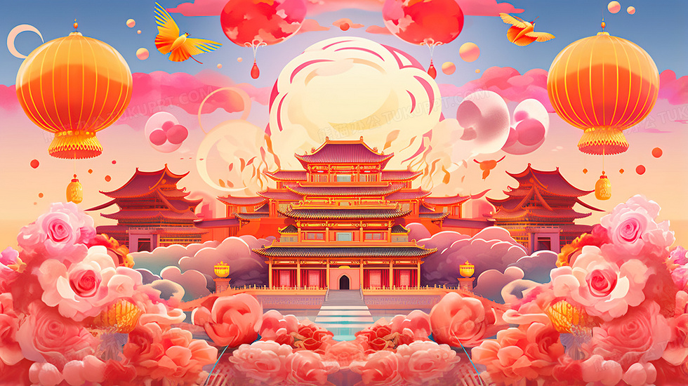 首页 > 插画 > 科技艺术 > 国潮风 > 国庆节国潮风山水建筑大好河山插画