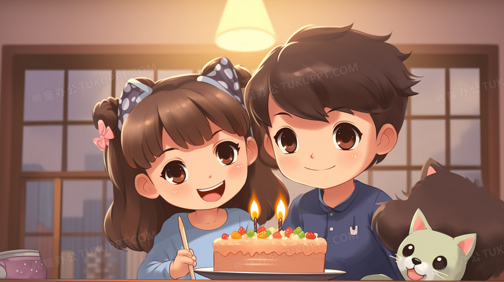 本作品内容为男孩女孩一起庆祝生日插画, 格式为 jpg, 大小4 MB, 图片尺寸为2912 x 1632, 源文件无水印, 欢迎使用熊猫办公。 如认为平台内容涉嫌侵权,可通过邮件:tousu@tukuppt.com提出书面通知,我们将及时处理。