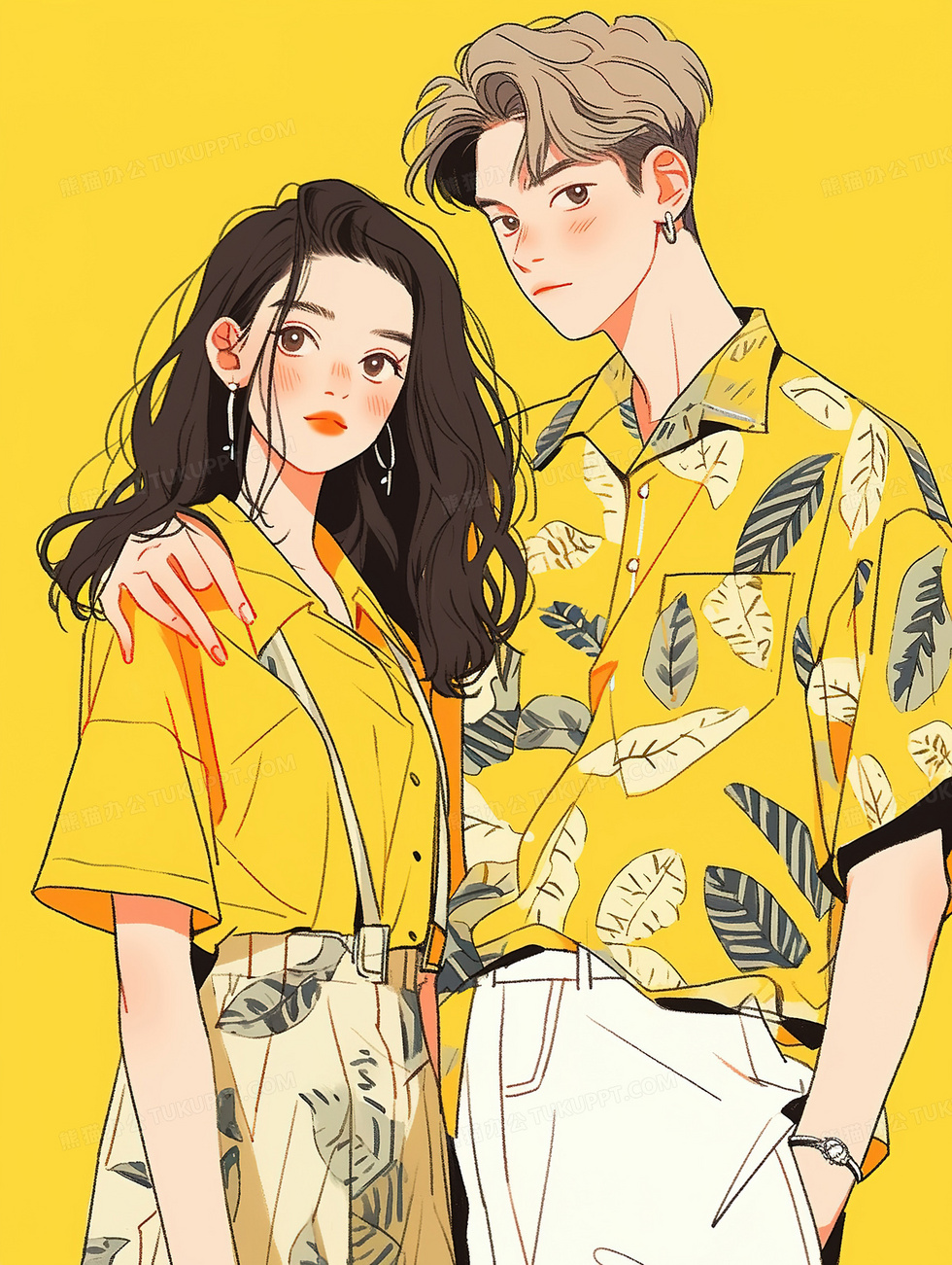 本作品内容为卡通青春时尚情侣装人物插画, 格式为 jpg, 大小6 MB, 图片尺寸为1856 x 2464, 源文件无水印, 欢迎使用熊猫办公。 如认为平台内容涉嫌侵权,可通过邮件:tousu@tukuppt.com提出书面通知,我们将及时处理。