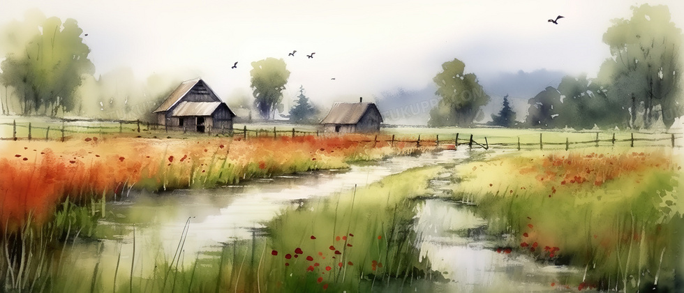 本作品内容为水彩风郊外农庄风景创意插画, 格式为 jpg, 大小6 MB, 图片尺寸为3360 x 1440, 源文件无水印, 欢迎使用熊猫办公。 如认为平台内容涉嫌侵权,可通过邮件:tousu@tukuppt.com提出书面通知,我们将及时处理。