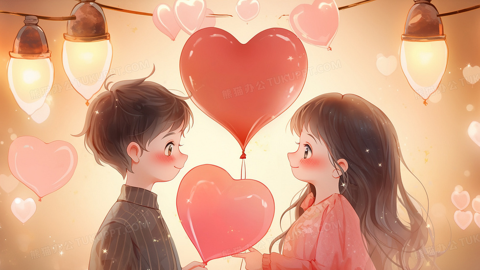 本作品内容为卡通Q版情侣情人节创意插画, 格式为 jpg, 大小4 MB, 图片尺寸为2548 x 1434, 源文件无水印, 欢迎使用熊猫办公。 如认为平台内容涉嫌侵权,可通过邮件:tousu@tukuppt.com提出书面通知,我们将及时处理。