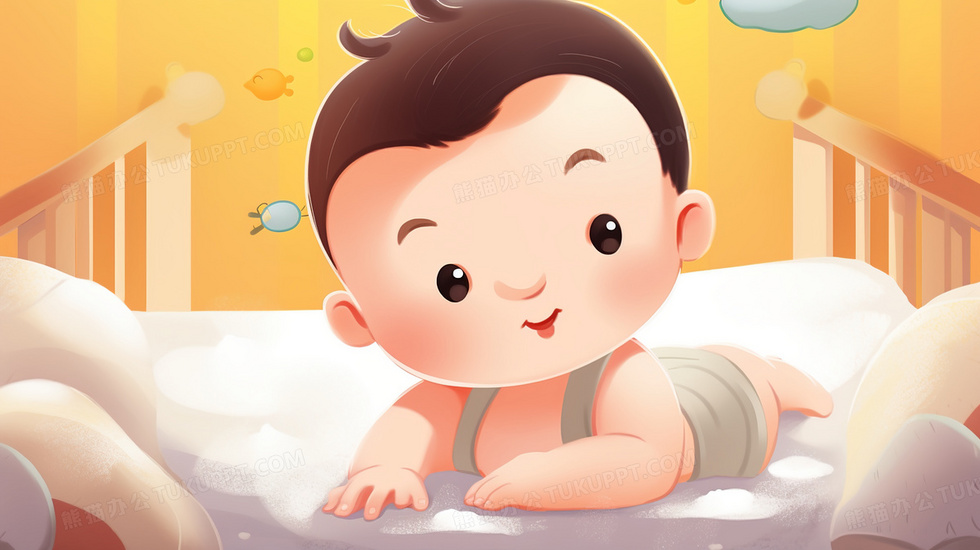 本作品内容为婴儿床里的小宝宝插画, 格式为 jpg, 大小4 MB, 图片尺寸为2912 x 1632, 源文件无水印, 欢迎使用熊猫办公。 如认为平台内容涉嫌侵权,可通过邮件:tousu@tukuppt.com提出书面通知,我们将及时处理。