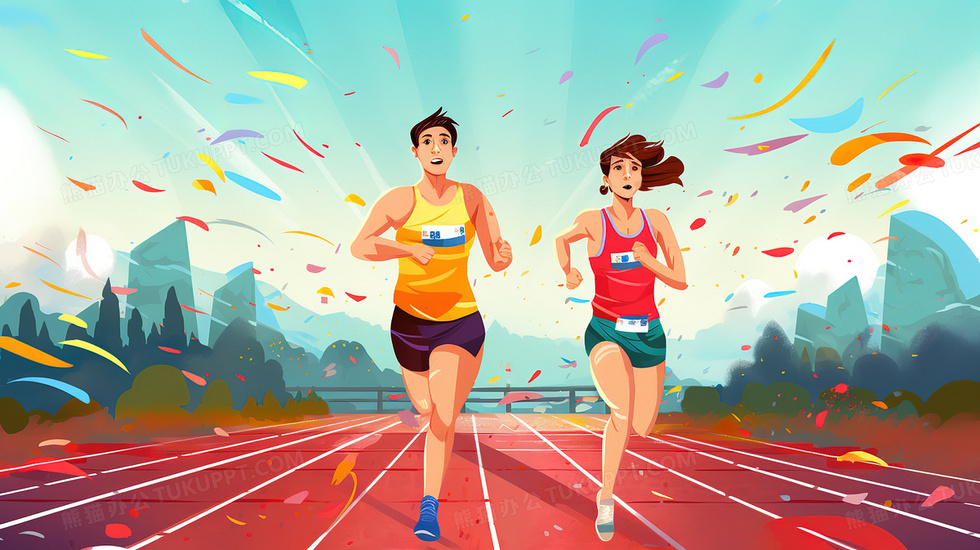 本作品内容为运动员们在跑道上激烈的比拼插画, 格式为 jpg, 大小5 MB, 图片尺寸为2912 x 1632, 源文件无水印, 欢迎使用熊猫办公。 如认为平台内容涉嫌侵权,可通过邮件:tousu@tukuppt.com提出书面通知,我们将及时处理。