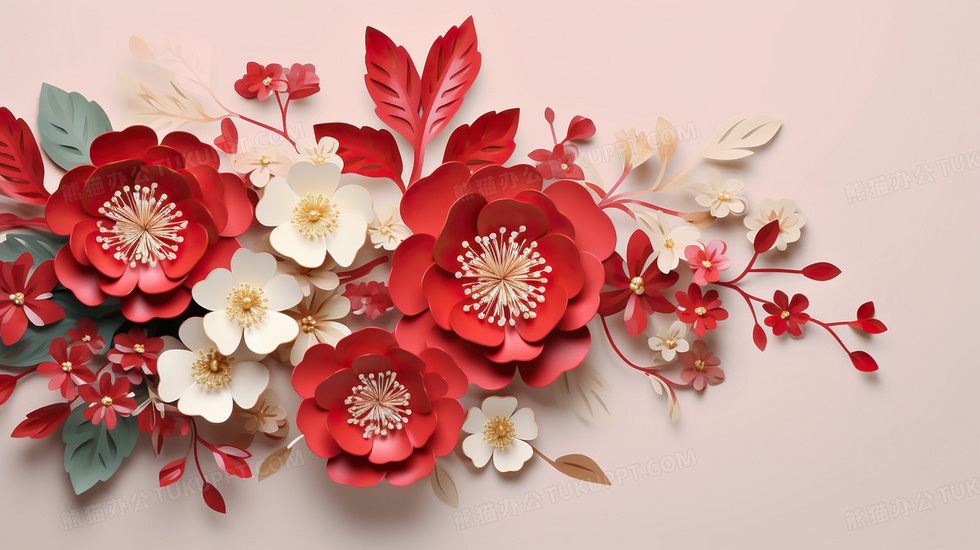 本作品内容为2024新年龙年喜庆浮雕花卉插画, 格式为 jpg, 大小5 MB, 图片尺寸为2912 x 1632, 源文件无水印, 欢迎使用熊猫办公。 如认为平台内容涉嫌侵权,可通过邮件:tousu@tukuppt.com提出书面通知,我们将及时处理。