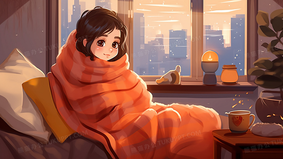 本作品内容为冬天在室内被窝里温暖休息插画, 格式为 jpg, 大小5 MB, 图片尺寸为2912 x 1632, 源文件无水印, 欢迎使用熊猫办公。 如认为平台内容涉嫌侵权,可通过邮件:tousu@tukuppt.com提出书面通知,我们将及时处理。