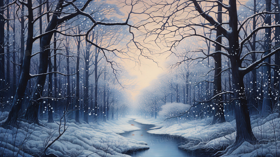 本作品内容为冬季雪地森林溪流唯美雪景插画, 格式为 jpg, 大小8 MB, 图片尺寸为2912 x 1632, 源文件无水印, 欢迎使用熊猫办公。 如认为平台内容涉嫌侵权,可通过邮件:tousu@tukuppt.com提出书面通知,我们将及时处理。