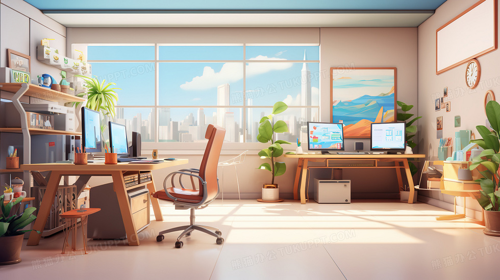 本作品内容为办公室场景设计C4D插画, 格式为 jpg, 大小5 MB, 图片尺寸为2912 x 1632, 源文件无水印, 欢迎使用熊猫办公。 如认为平台内容涉嫌侵权,可通过邮件:tousu@tukuppt.com提出书面通知,我们将及时处理。