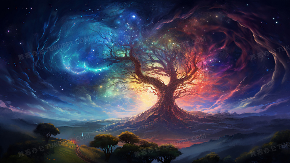 本作品内容为魔法树梦幻风景科幻场景插画, 格式为 jpg, 大小8 MB, 图片尺寸为2912 x 1632, 源文件无水印, 欢迎使用熊猫办公。 如认为平台内容涉嫌侵权,可通过邮件:tousu@tukuppt.com提出书面通知,我们将及时处理。