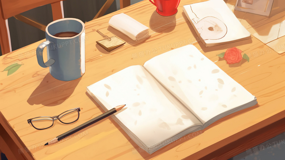 本作品内容为卡通书桌桌面插画, 格式为 jpg, 大小5 MB, 图片尺寸为2912 x 1632, 源文件无水印, 欢迎使用熊猫办公。 如认为平台内容涉嫌侵权,可通过邮件:tousu@tukuppt.com提出书面通知,我们将及时处理。
