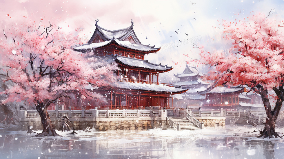 首页 > 插画 > 科技艺术 > 中国风 > 冬季梅花林里的塔楼插画