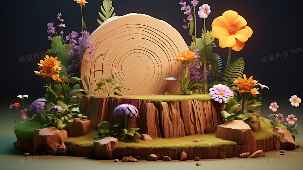 本作品内容为3D立体唯美意境花朵木头产品展示台图片, 格式为 jpg, 大小6 MB, 图片尺寸为2912 x 1632, 源文件无水印, 欢迎使用熊猫办公。 如认为平台内容涉嫌侵权,可通过邮件:tousu@tukuppt.com提出书面通知,我们将及时处理。