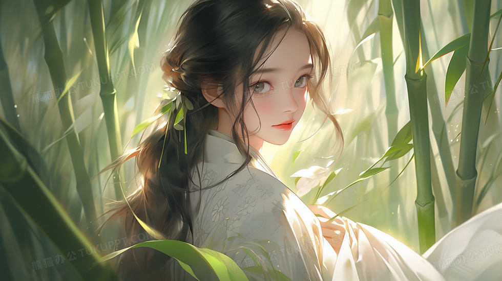 本作品内容为竹林唯美中国风少女侧脸特写插画, 格式为 jpg, 大小5 MB, 图片尺寸为2912 x 1632, 源文件无水印, 欢迎使用熊猫办公。 如认为平台内容涉嫌侵权,可通过邮件:tousu@tukuppt.com提出书面通知,我们将及时处理。